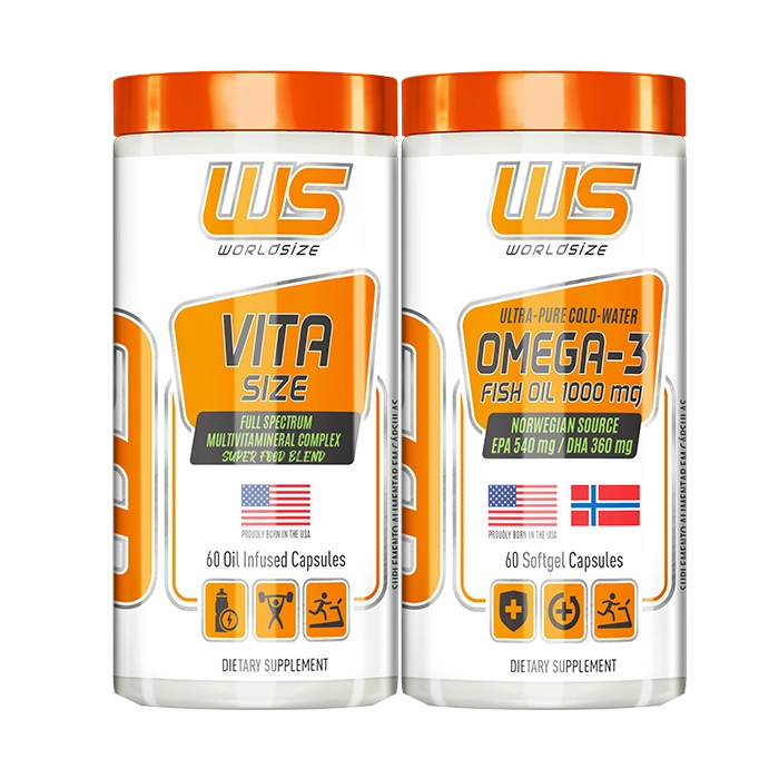 O óleo de peixe ômega-3 da WorldSize® contém 100% de ácidos graxos essenciais de origem nórdica altamente purificados que não podem ser produzidos pelo organismo humano. Feito com cápsulas de softgel com revestimento entérico para evitar colapso prematuro (isso significa nenhum gosto residual) e para fornecer resultados máximos na saúde cardiovascular, cognitiva e das articulações.